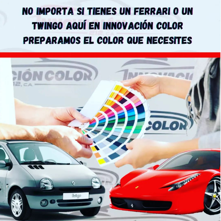 No te preocupes por el modelo de tu carro. Aquí en INNOVACION COLOR 212 preparamos el color buscas.